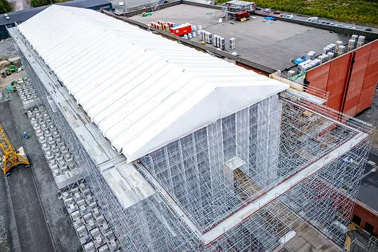 Under byggnationen har 3 400 kvadratmeter Keder XL väderskydd använts.