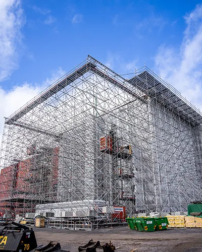 I Härnösand växer norra Europas modernaste arkivbyggnad fram – en koloss om hela 34 000 kvadratmeter. För att skydda limträstommen på kontorsdelen har ställningsföretaget Highcon monterat 3 400 kvadratmeter Keder XL väderskydd – den största volym platschefen Mikael Andersson någonsin varit med om.