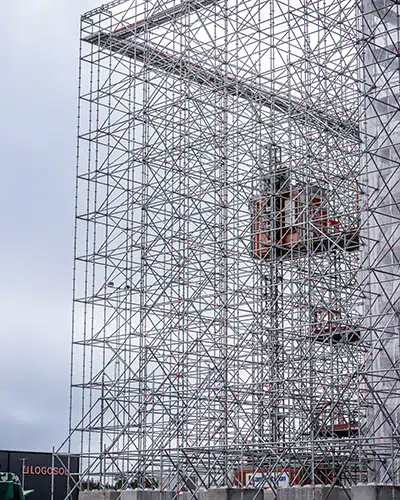 Vid byggnationen av Riksarkivet använde Highcon förutom Keder XL väderskydd även Layher Allround och Allround FW-systemet, bland annat över ett hisschakt i betongbyggnaden. För ställningsprojektering tog de hjälp av LayPLAN CAD som sammanställer både materiallistor och visuella ritningar att presentera för kund.